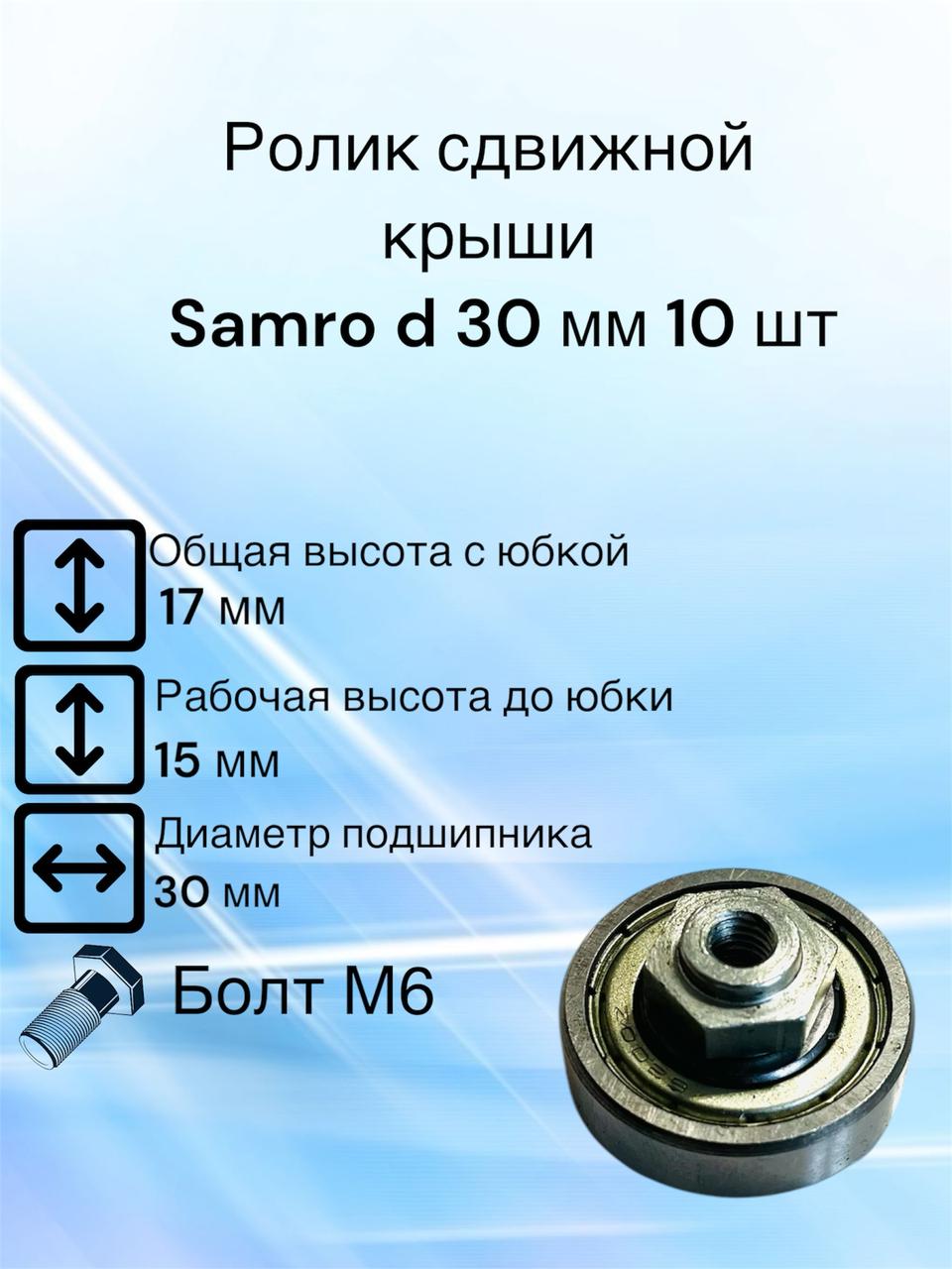 Ролик сдвижной крыши Самро d 30 из высокопрочных марок стали с антикоррозийным покрытием, оцинкованный.