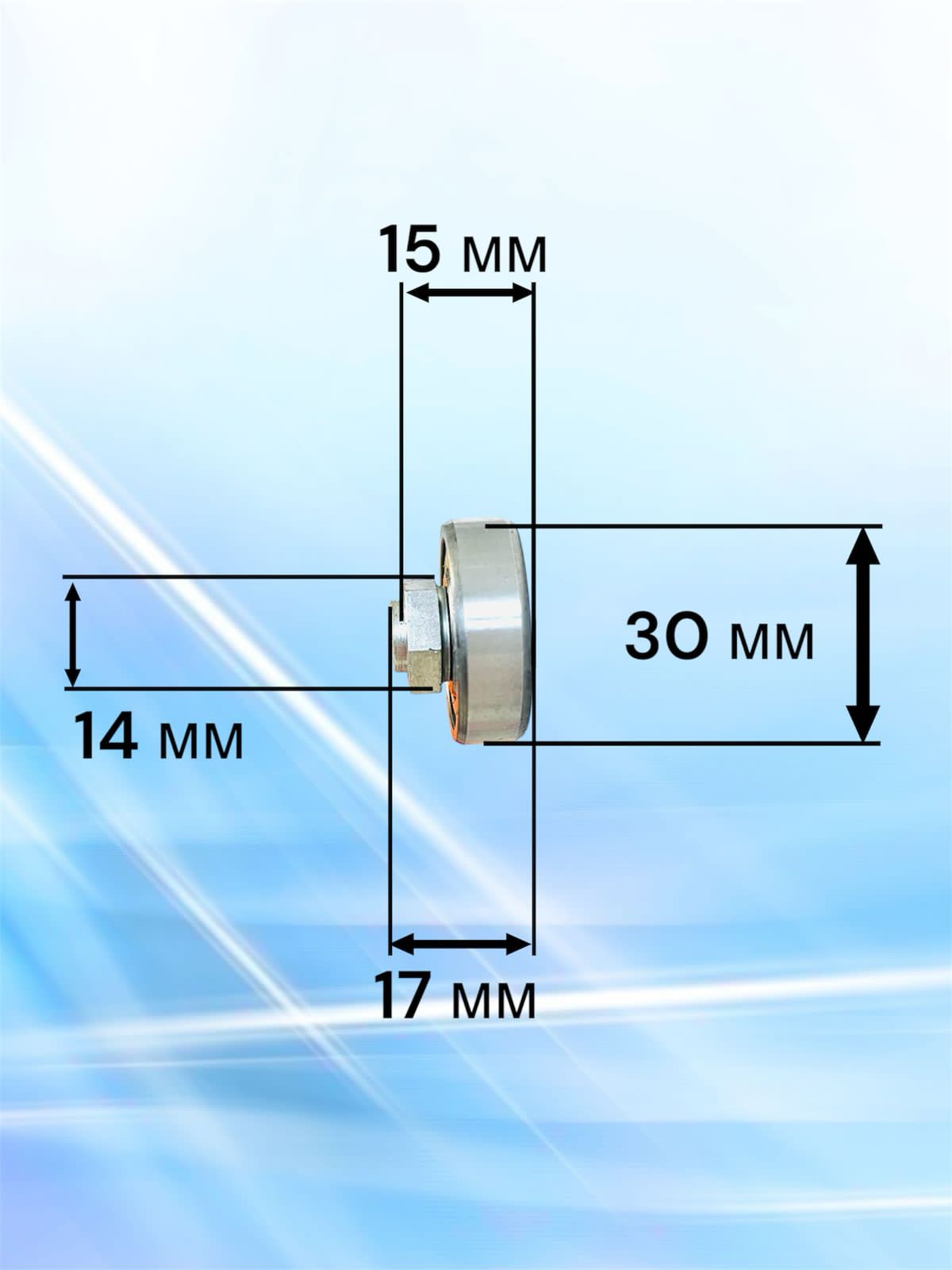 📏 Высота ролика общая 17 мм, длина от основания подшипника до посадочного места 15 мм.