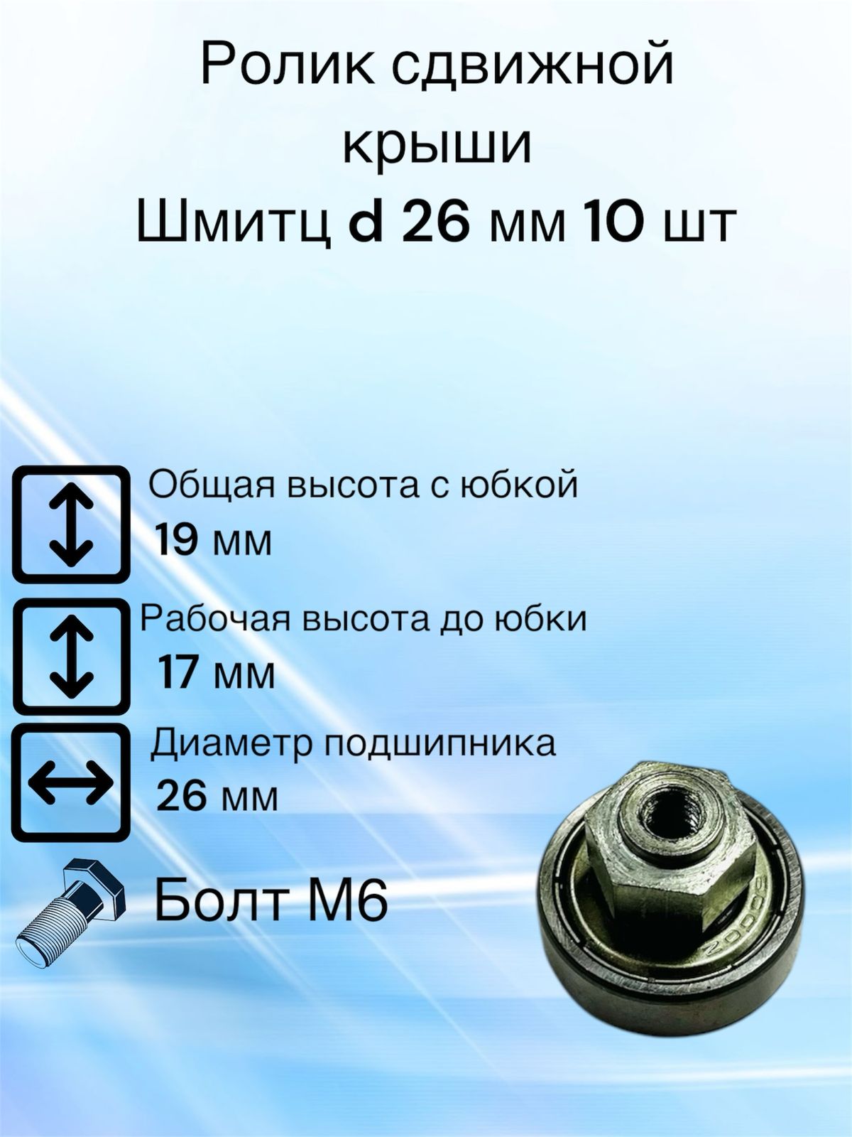 📏 Высота ролика общая 19 мм, длина от основания подшипника до посадочного места 17 мм.